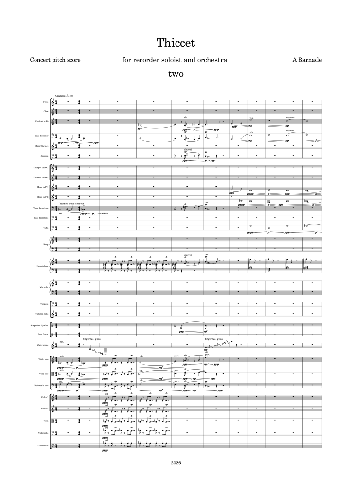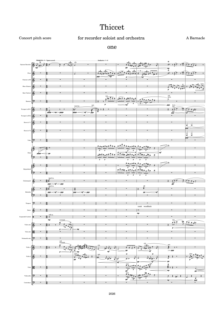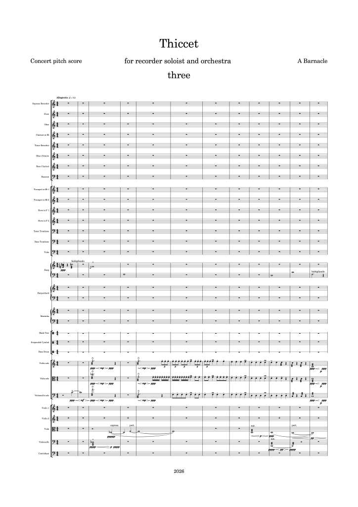Work in progress Thiccet for recorder soloist and orchestra Thiccet one Thiccet two Thiccet three …………………………………….